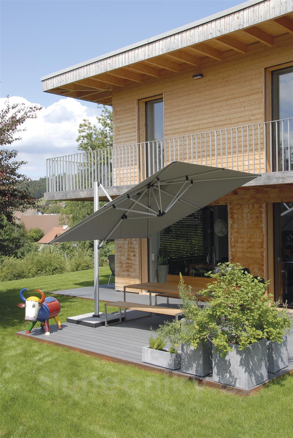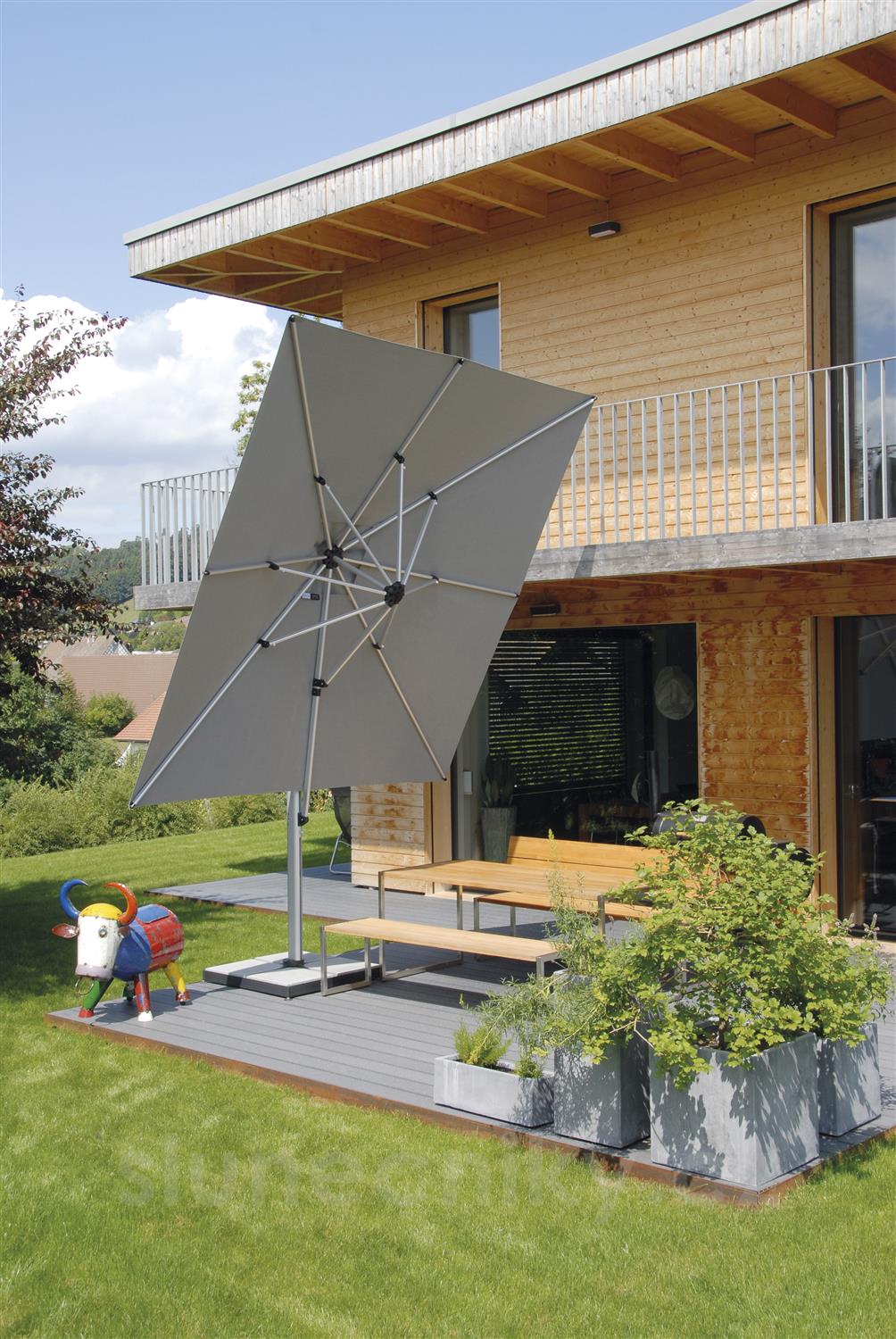 Boční slunečník Shademaker Sirius je určený pro náročné zákazníky, kteří hledají boční slunečník, který nabízí dobrou větruodolnost. Model Sirius vyniká zvýšenou větruodolností porovnatelnou s řadou středových slunečníků a špičkovým zpracováním a designem. Pro fixní kotvení (zemní kotva nebo montážní deska) je větruodolnost 60 km/h. Slunečník lze otáčet kolem svislé osy o celých 360° a naklápět podle tyče slunečníku. Díky technologicky vyspělé konstrukci je