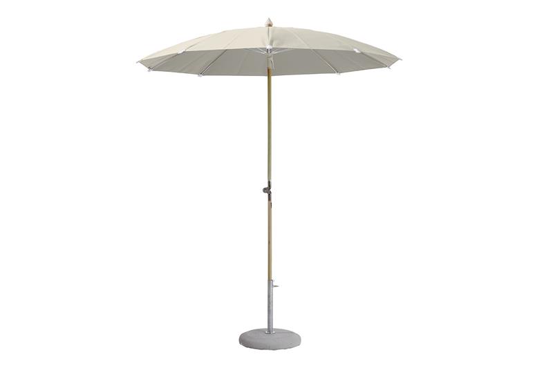 Dřevěný slunečník z jasanového dřeva ALEXO® od firmy Glatz je designová ikona, původní design z roku 1932. Díky naklápěcímu kloubu vyrobenému z poniklované mosazi lze slunečník naklápět v několika krocích. Má kožené výstuže na koncích žeber. Vyrobeno ve Švýcarsku.