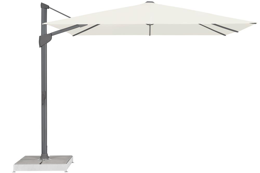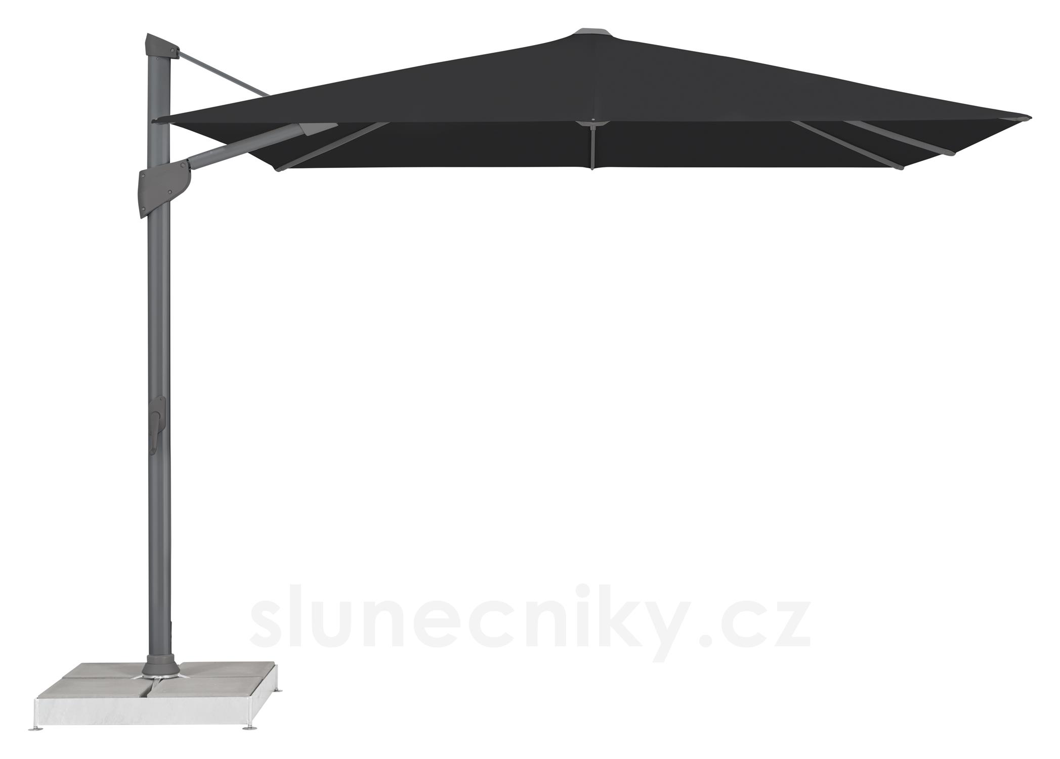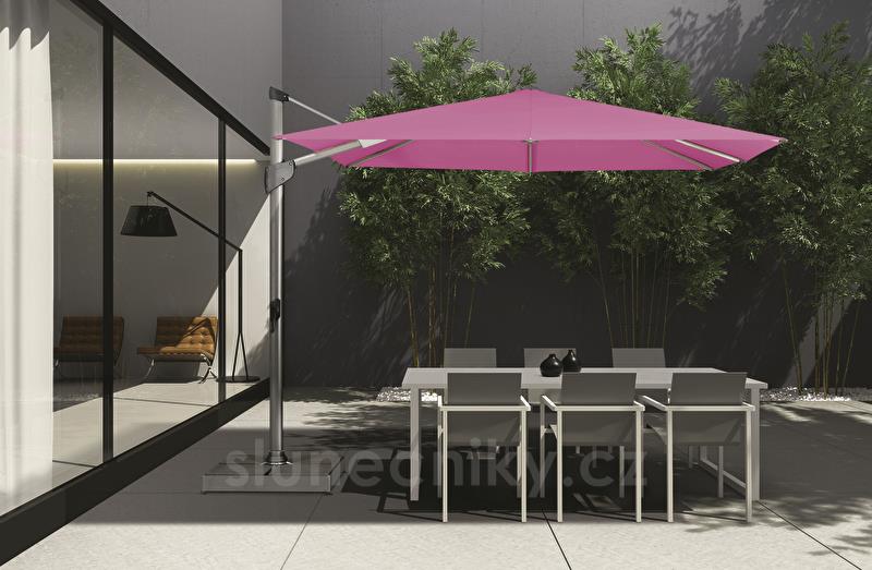 Profesionální model bočního slunečníku určeného pro privátní použití v místech se silnějším větrem nebo pro profesionální použití v restauracích hotelech, wellness apod.