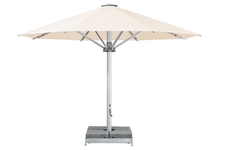 PALAZZO® Style je profesionální slunečník určený pro použití v restauracích, hotelech, komerčních provozech nebo pro náročné privátní zákazníky. K dispozici je až do rozměru 600 cm (kulatý), 500x500 cm (čtvercový) nebo 550x450 cm (obdélníkový). Samozřejmostí je možnost doplnění o elektrický pohon, dálkové ovládání, LED osvětlení a infračervené topení.
