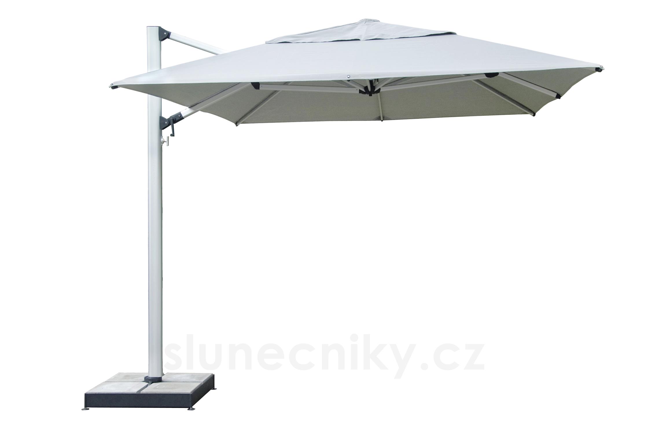 Slunečník lze otáčet kolem svislé osy o celých 360° a naklápět podél svislé osy. Díky
