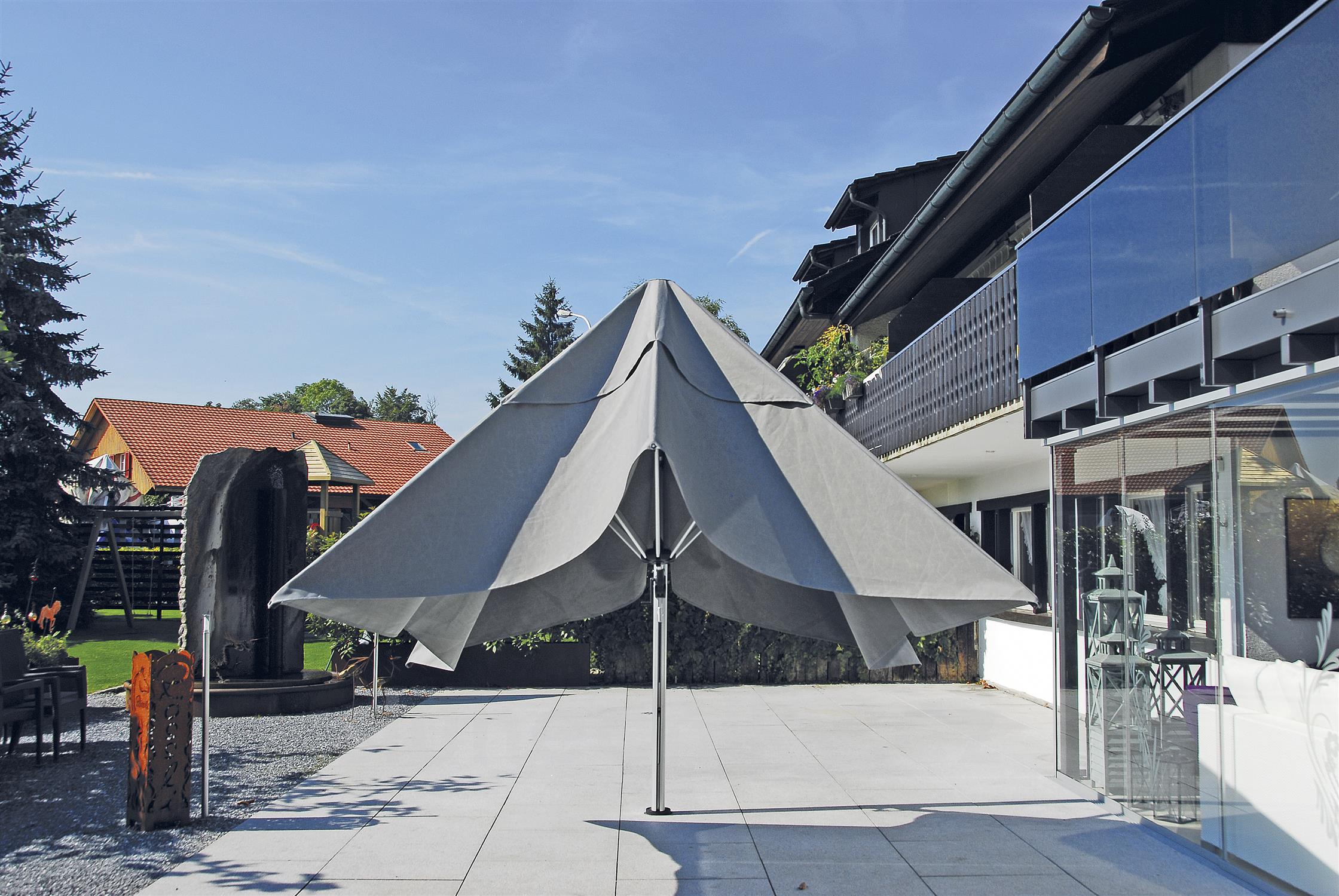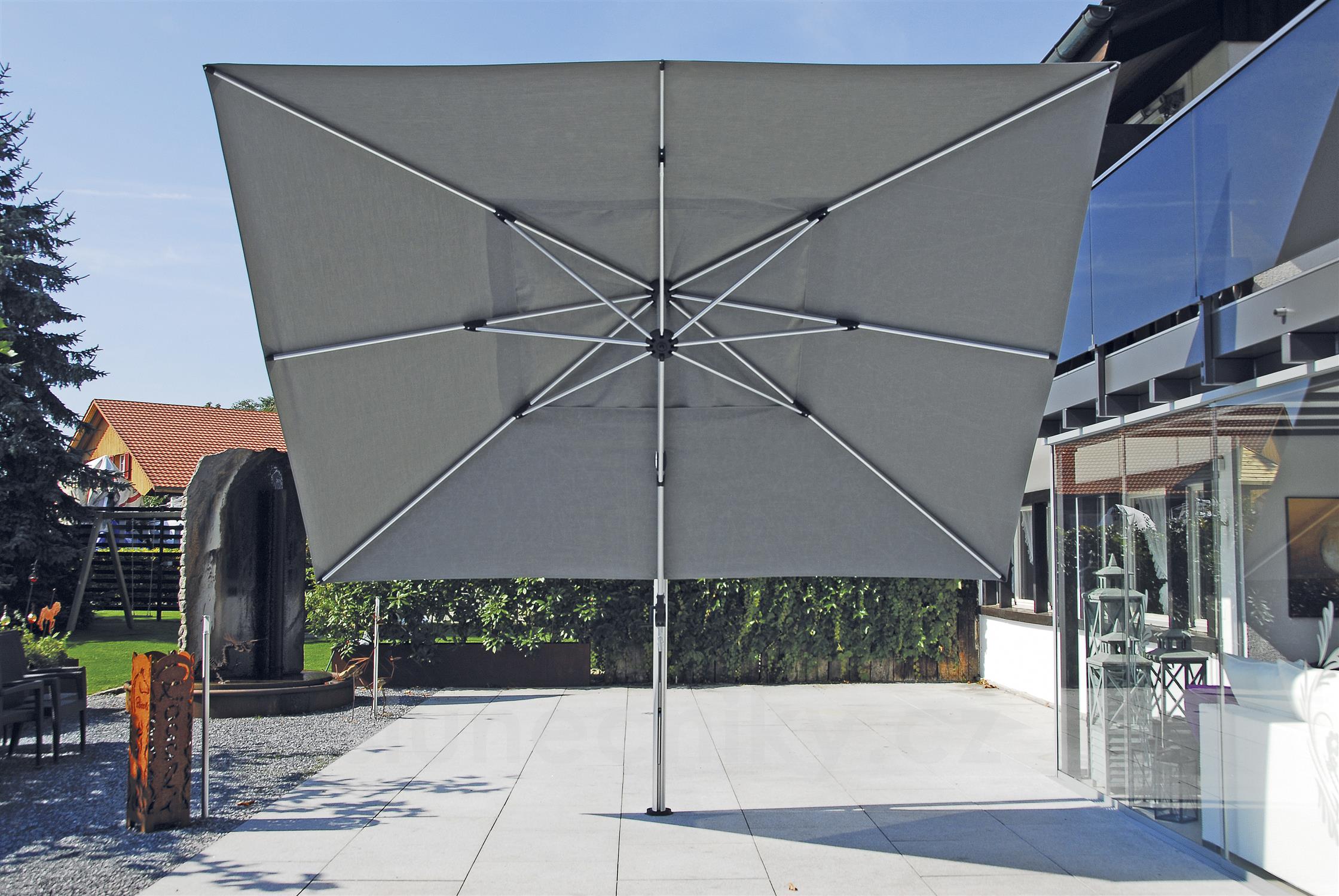 s řadou středových slunečníků a nerušícím elegantním designem. Větruodolnost pro rozměr 400x300 cm