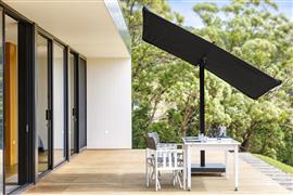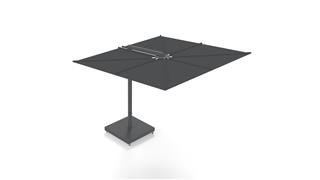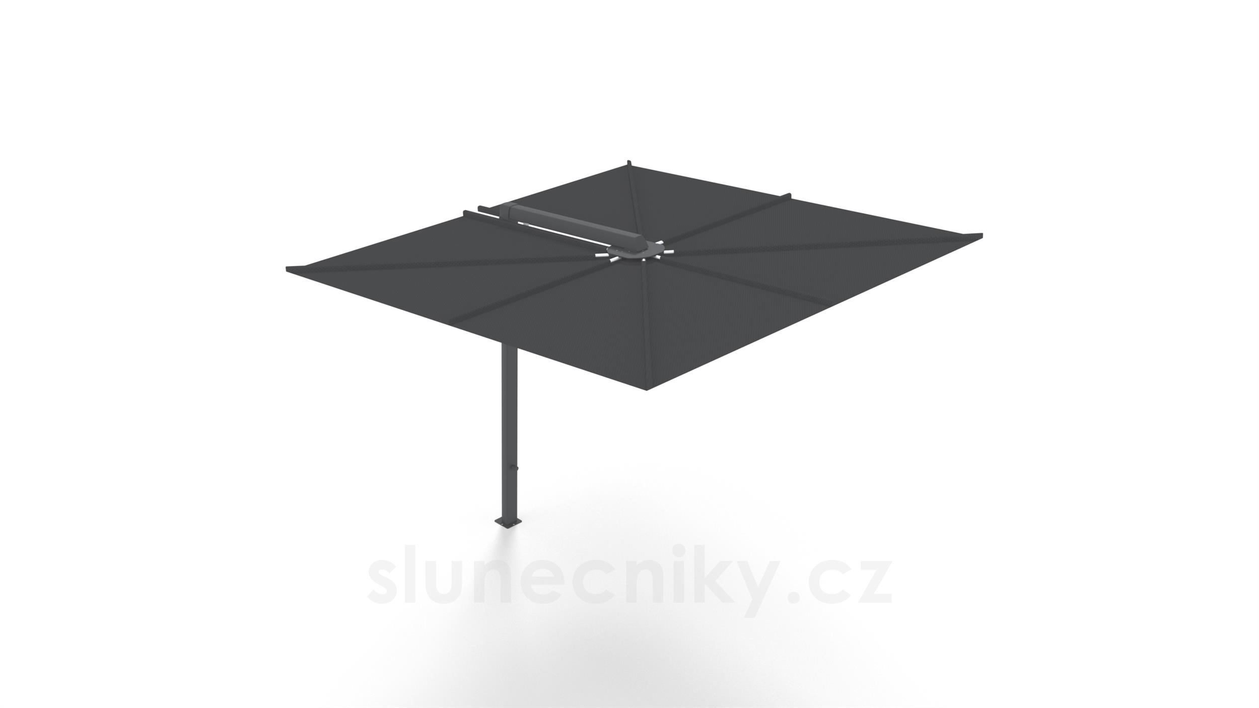 Designový slunečník Nano čtvercový 250x250 cm (2,5x2,5 m) značky Umbrosa. Stojný sloup je kolmý k zemi.