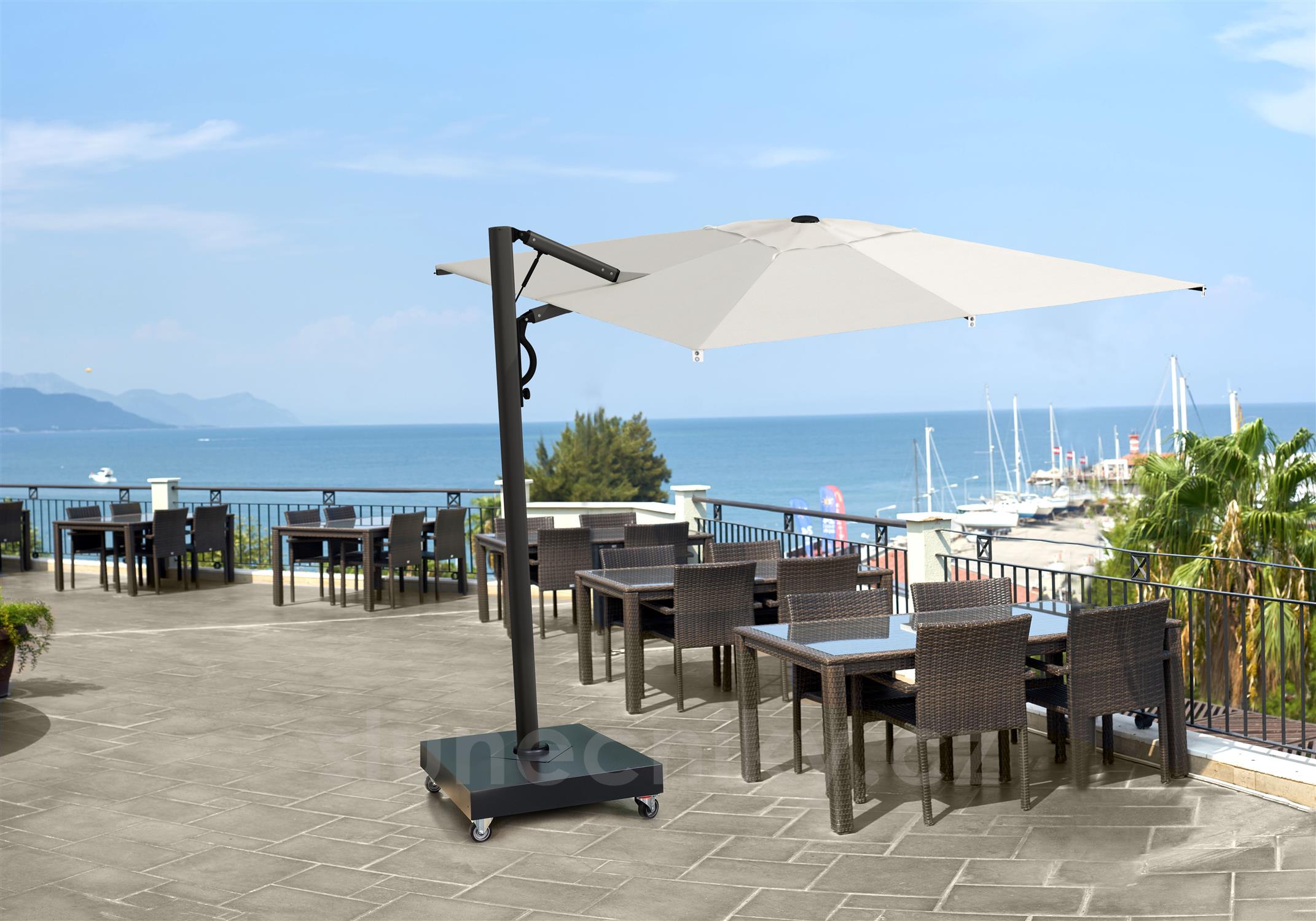 | Vlastnosti slunečníku | boční slunečníky otočné podle svislé osy |
