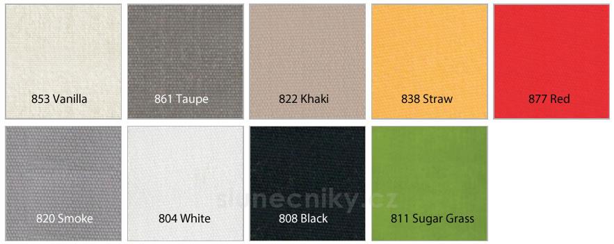 | Barva potahu | šedobéžové, taupe, béžové a hnědé slunečníky |