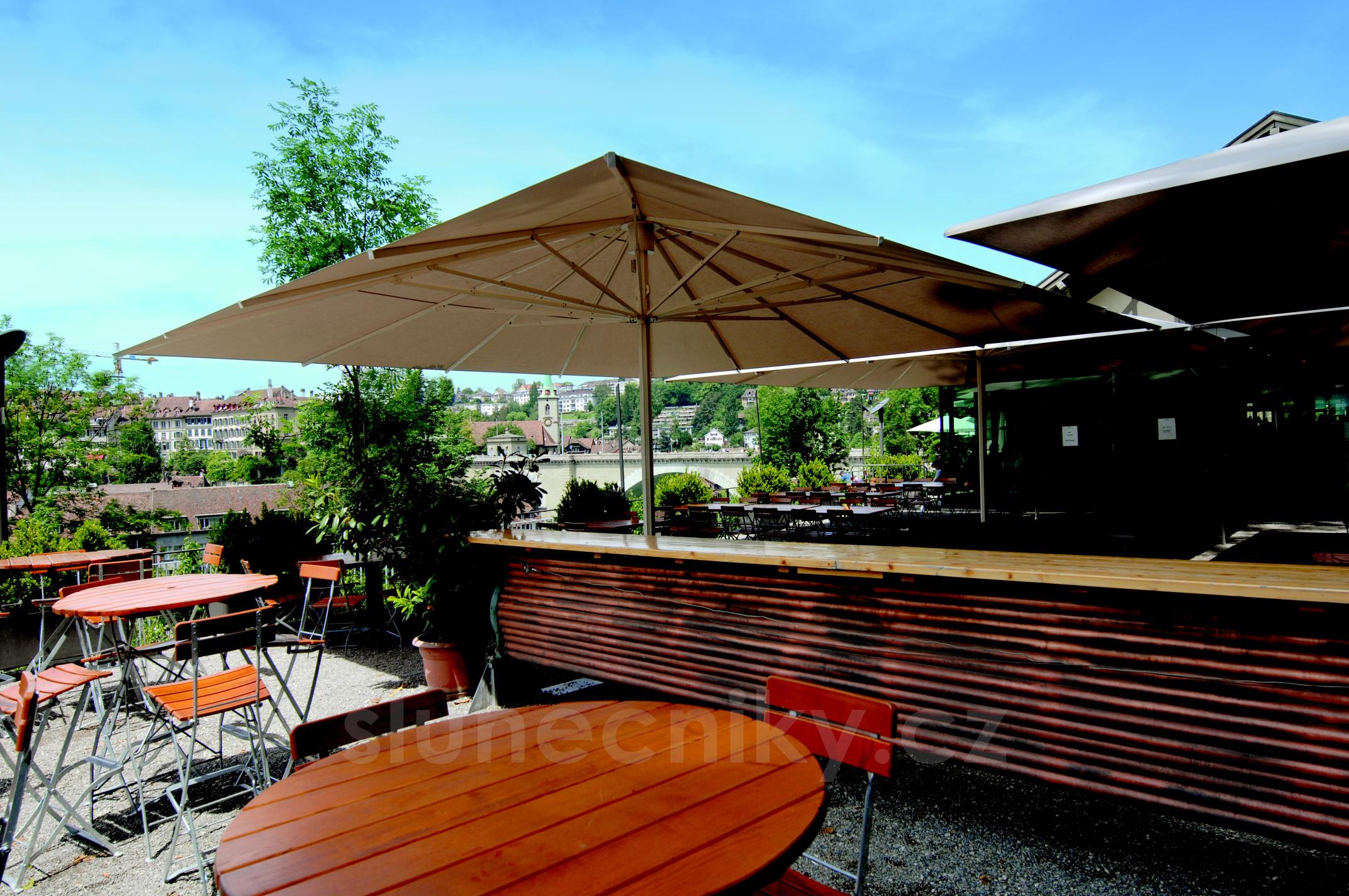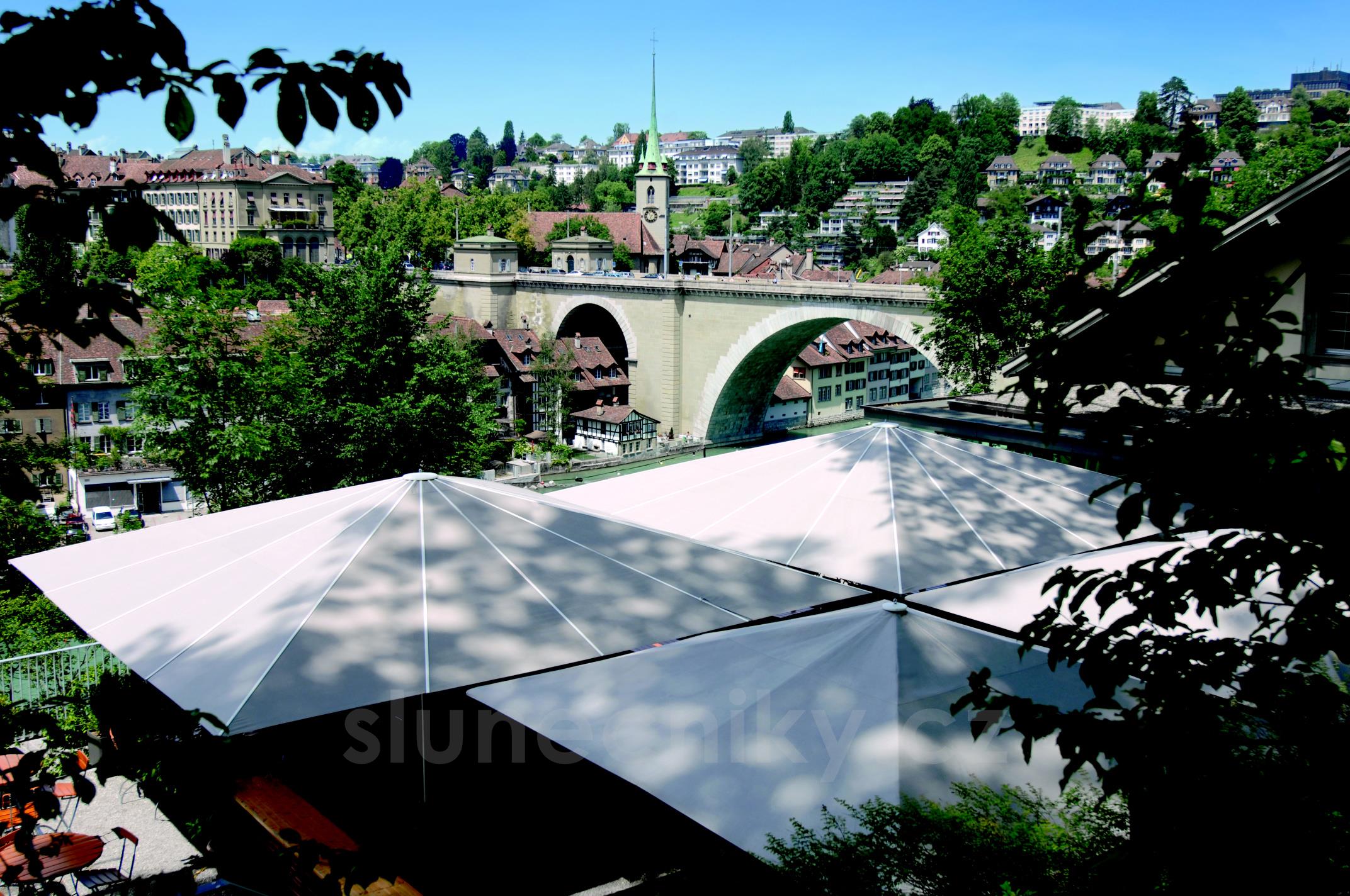 lze dokoupit okapy k propojení sousedících slunečníků