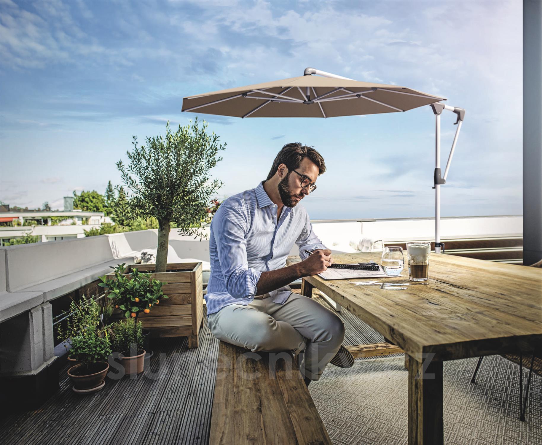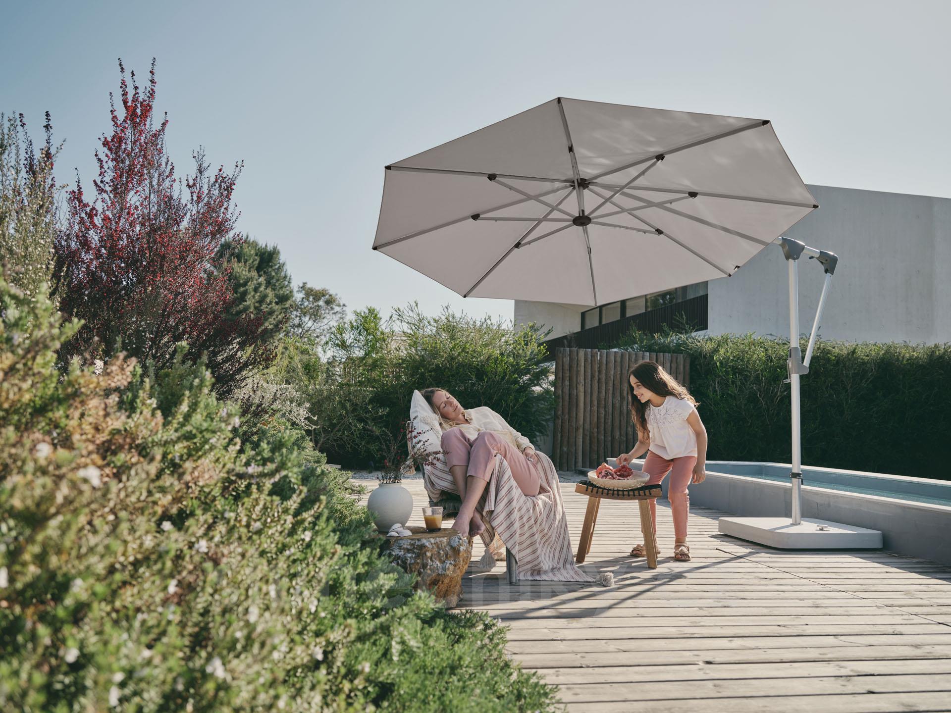 Boční slunečník SUNWING® CASA švýcarské značky Glatz lze horizontálně naklápět do