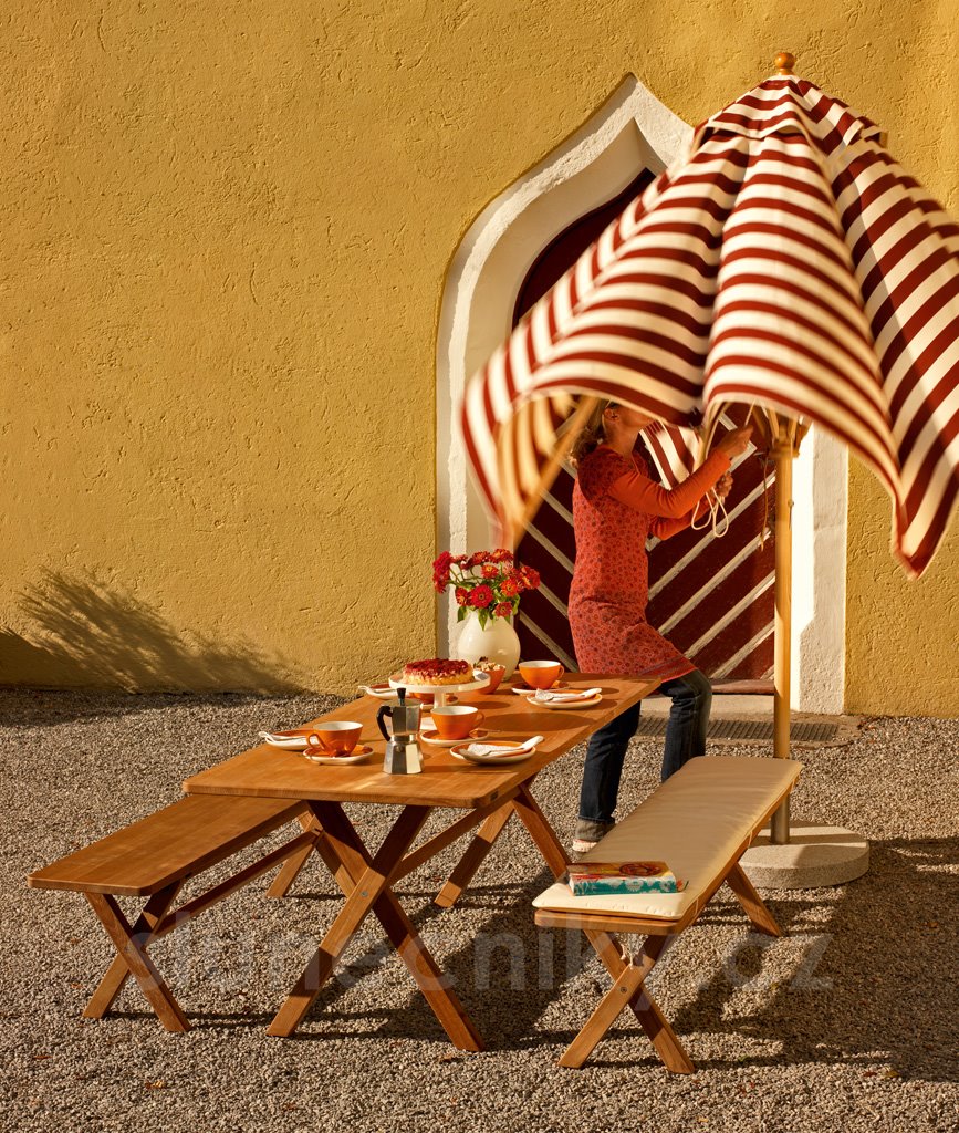 • slunečník lze objednat s lankovým mechanismem nebo bez (manuální rozevření a uzavření tahem)
