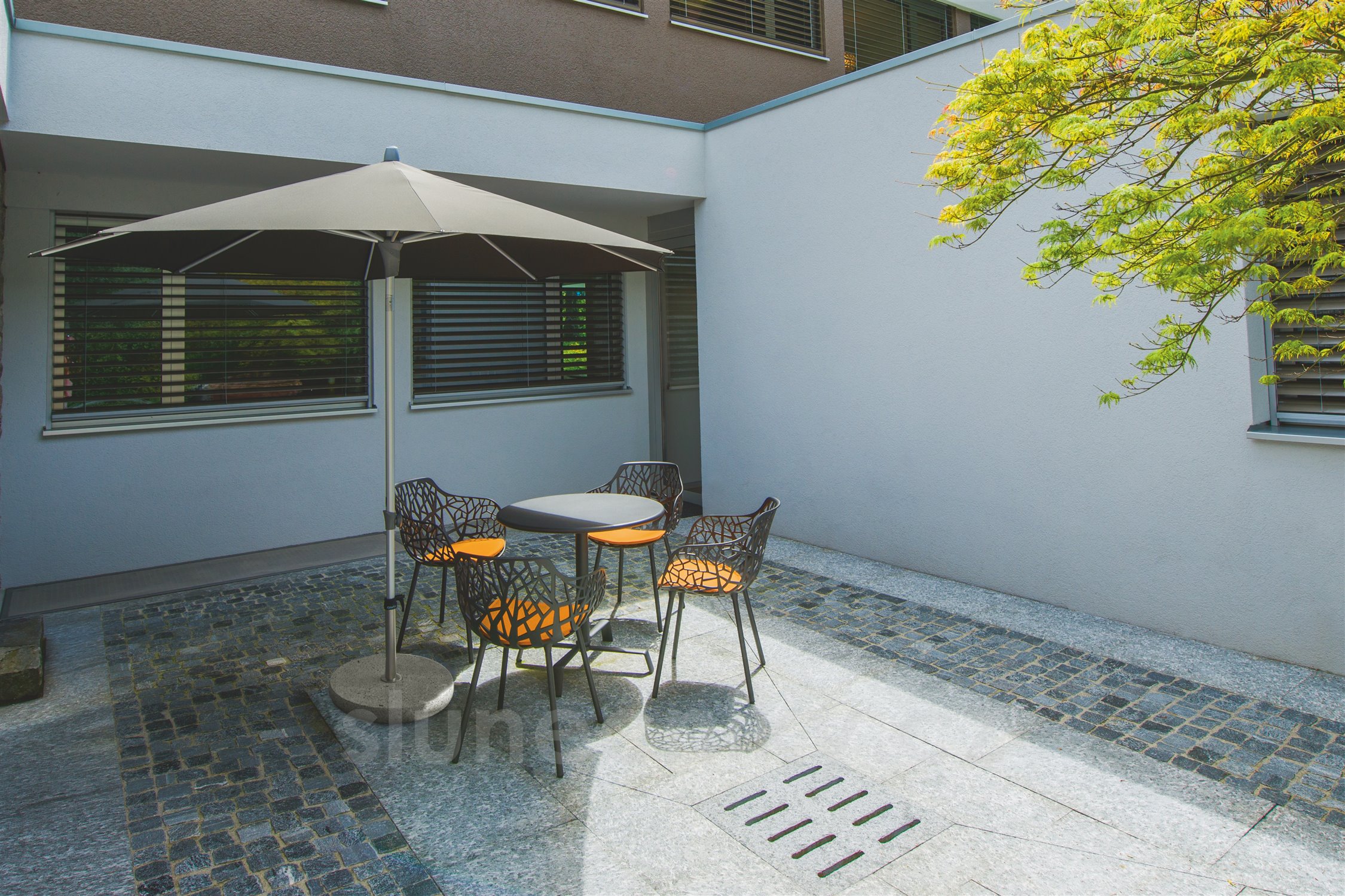 ALU-PUSH švýcarské značky Glatz je velmi praktický slunečník - lze ho naklápět a také regulovat výšku pomocí uzávěru na středové tyči. Odolný rám je vyroben z eloxovaného hliníku, slunečník lze snadno přemístit a lehce ovládat. Potah má vždy perfektně vypnutý díky samovypínacím koncovkám. Ke slunečníkům Glatz poskytujeme záruční a pozáruční servis a náhradní díly.