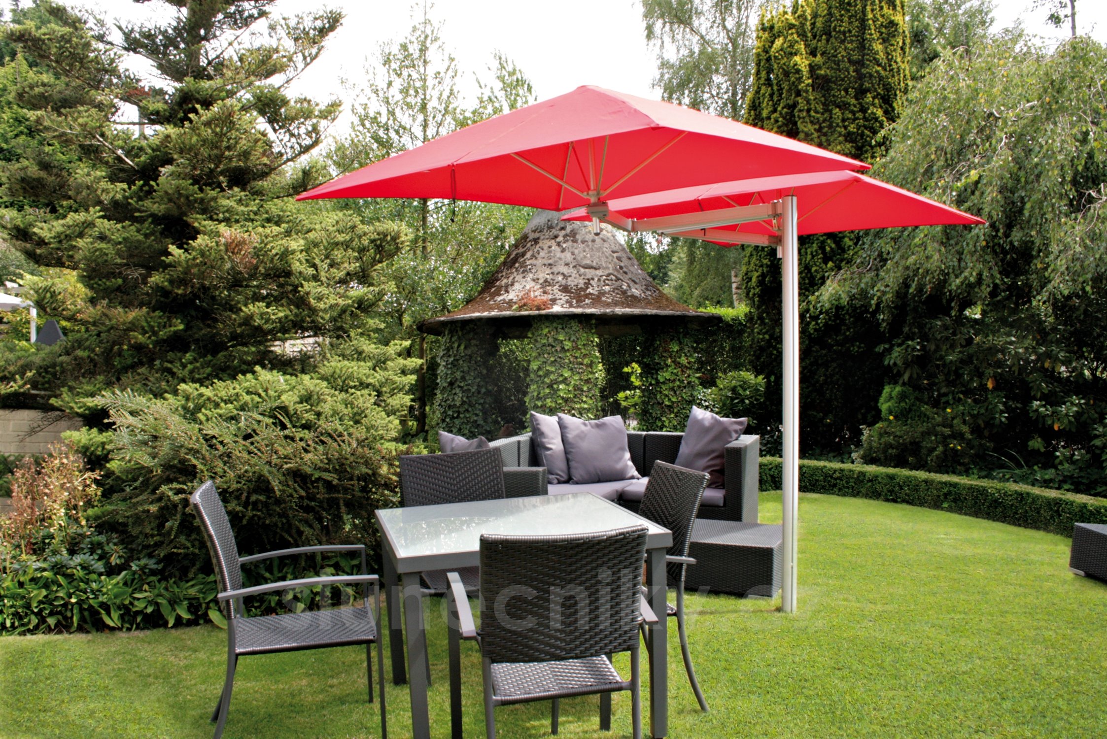 | Barva potahu | červené, terakotové, vínové a cihlové slunečníky |