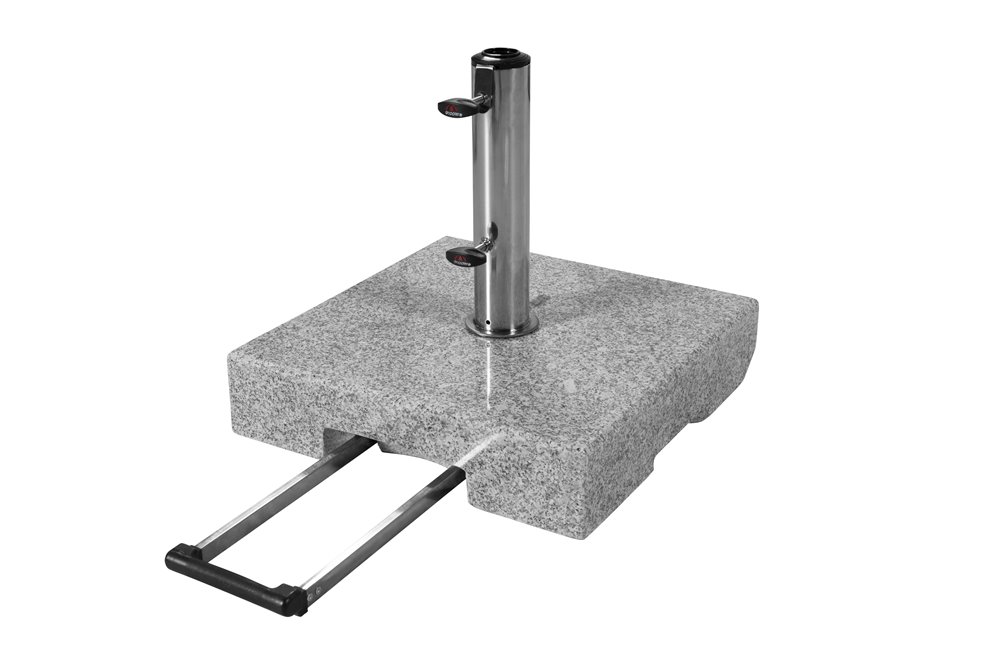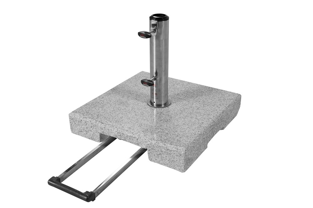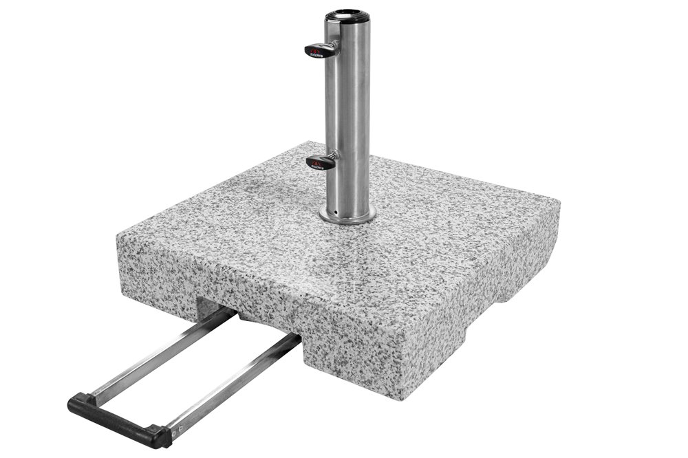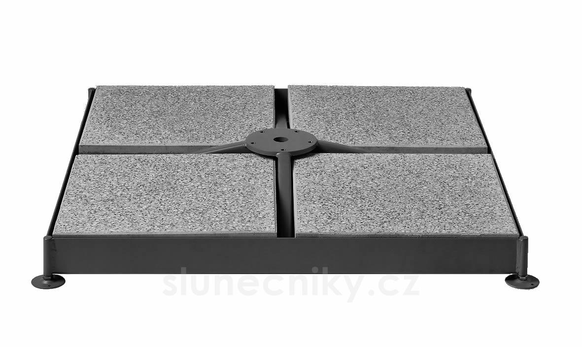 Ocelový lakovaný stojan M4 pro slunečníky značek Glatz. Rozměry stojanu 91x91x11,5 cm, stojan je určen pro 8 betonových nebo žulových dlaždic o rozměru 40x40x4 cm. Celková hmotnost stojanu je cca 120 kg. Stojan má stavitelné nožičky pro vyrovnání nerovností povrchu. Stojan je dodáván bez dlaždic (zakoupíte v nejbližších stavebninách nebo hobbymarketu).