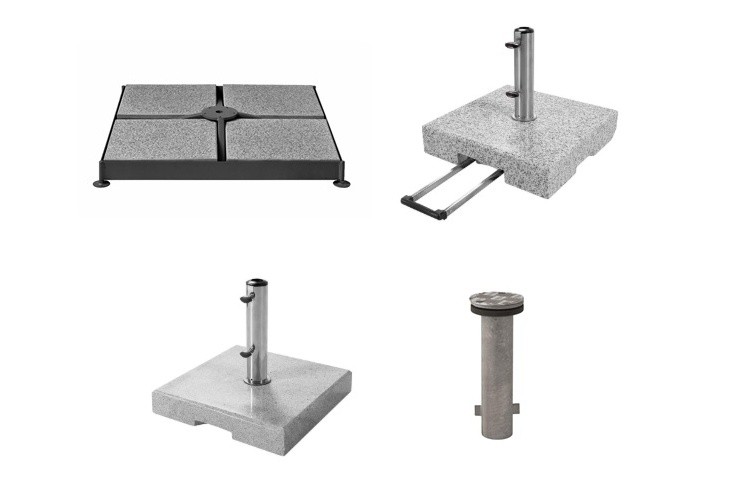 Dlaždicové stojany, zemní kotvy a ostatní kotvení pro slunečníky značek Glatz a Shademaker. Stojany o hmotnostech 120 kg, 180 kg, 240 kg a 360 kg s přírubou M4 vhodnou pro modely Sombrano, Sunwing, Fortero, Fortello, Palazzo Style, a další.