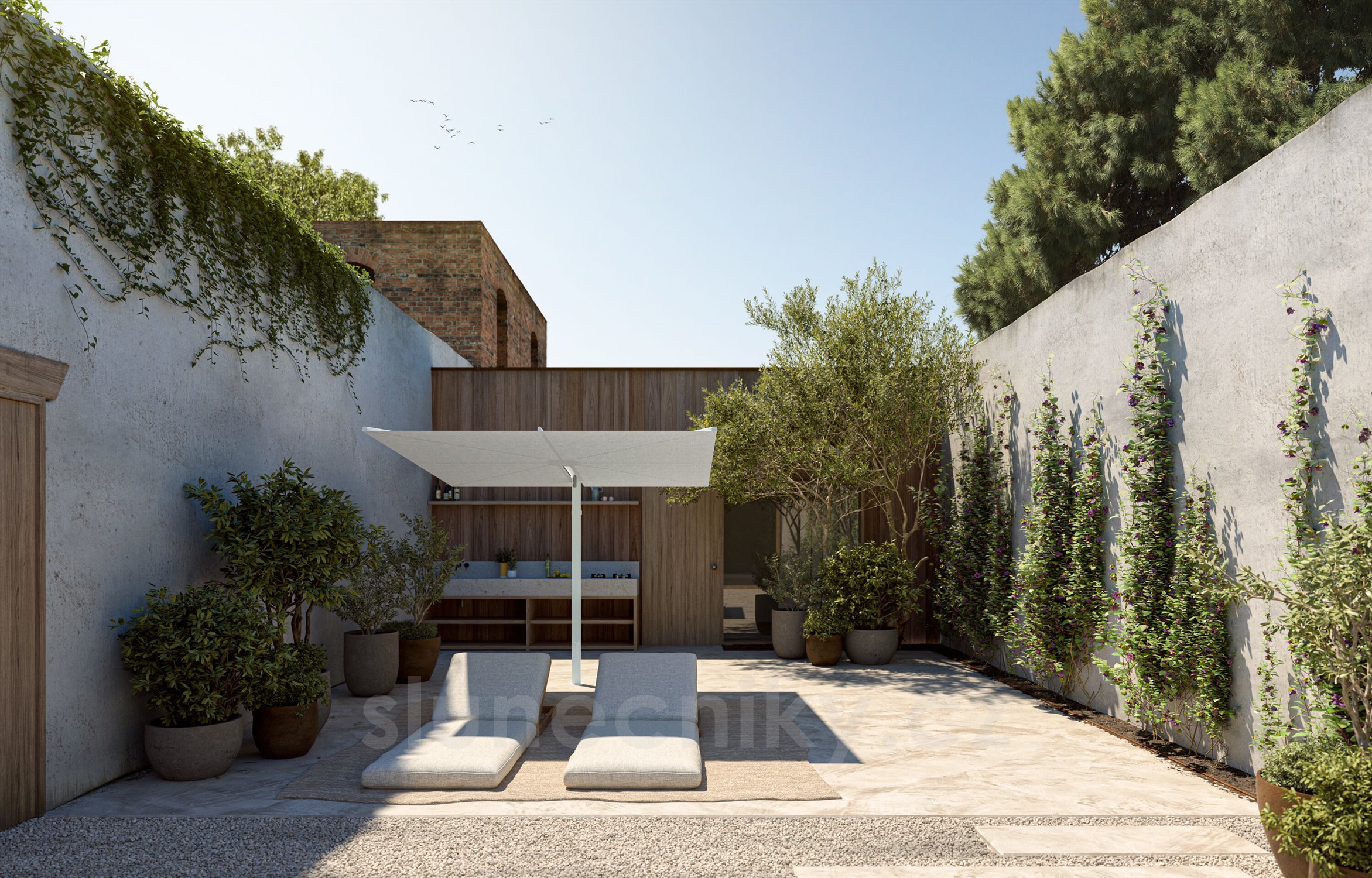 Nano je designový slunečník s minimalistickým tvarem. Je vysoce větruodolný.